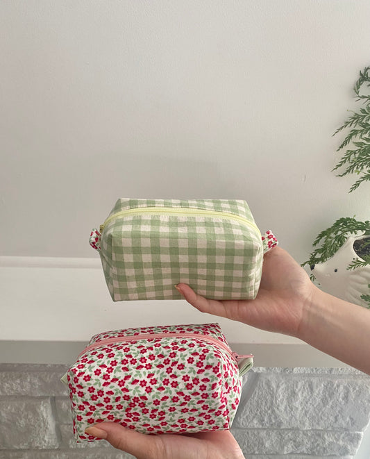 100% Cotton Green Gingham Makeup Pouch