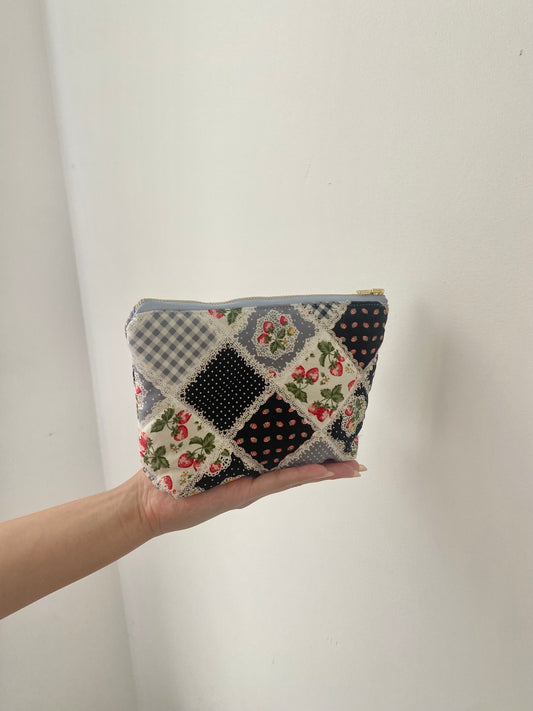 Patchwork fabric with strawberry pattern makeup pouch(small)