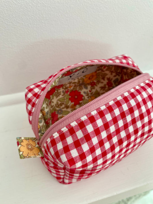 100% Cotton Gingham Check Makeup Pouch